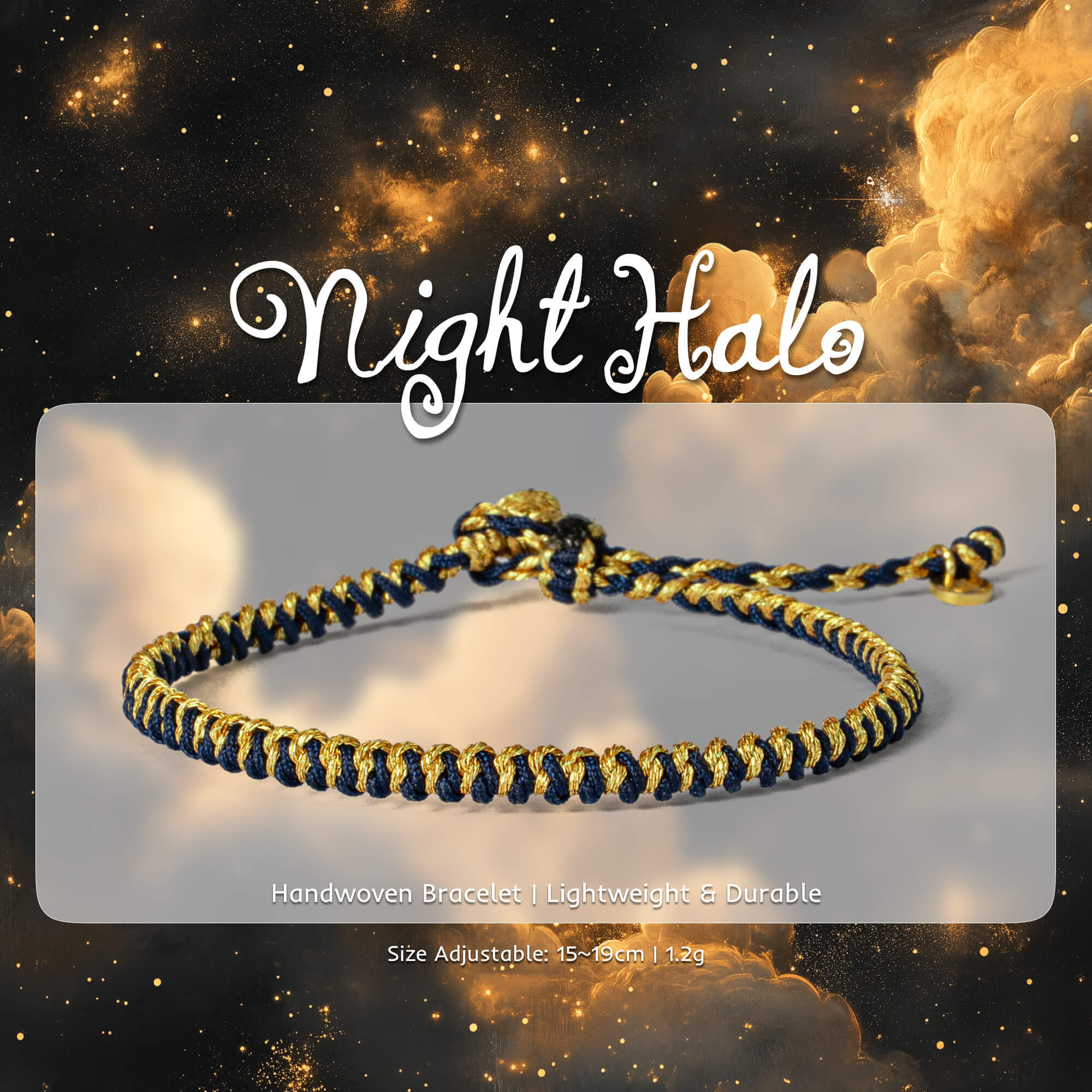 Wrap your wrist in the quiet strength of the night sky. The Night Halo bracelet blends deep navy threads with shimmering gold to capture the glow of moonlight breaking through darkness. Handwoven with care, it’s a subtle yet powerful symbol of resilience, clarity, and calm. Whether worn solo or stacked, it adds a refined touch to any moment worth remembering.
