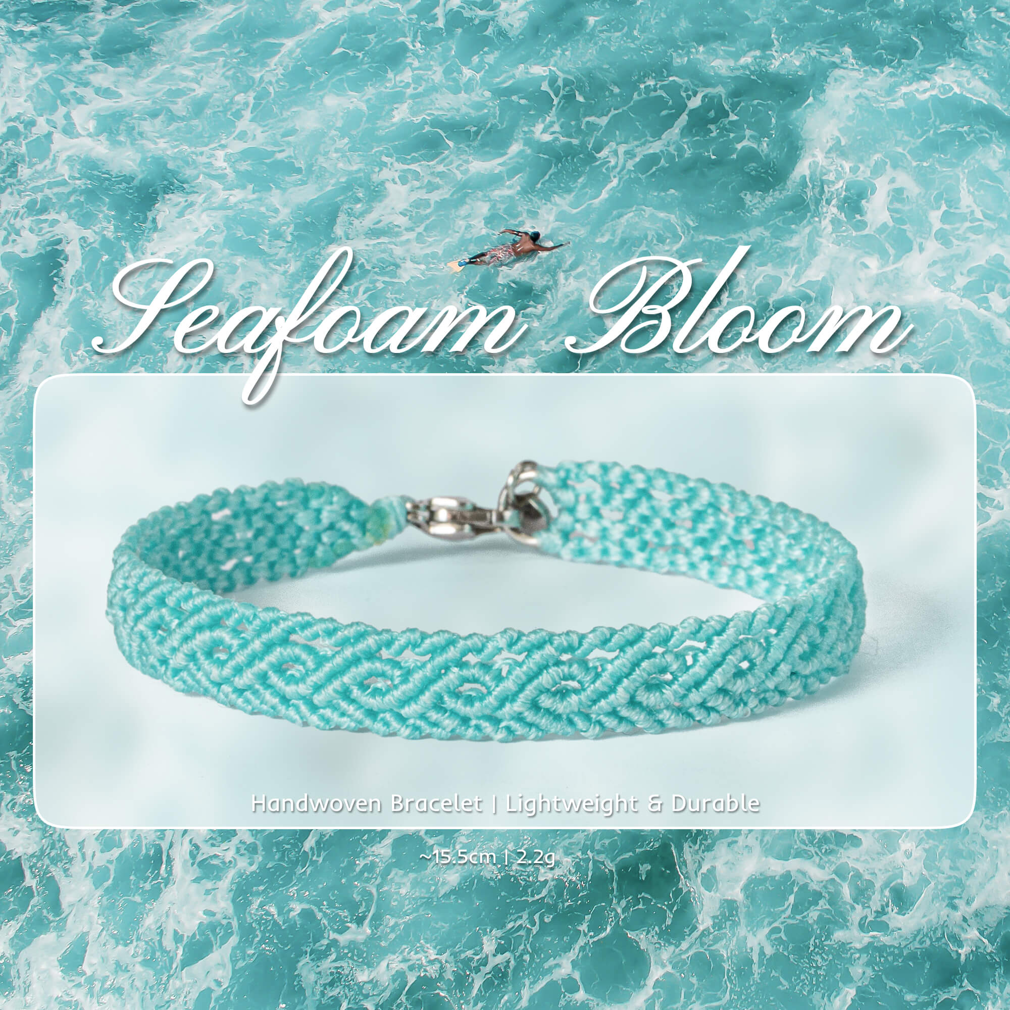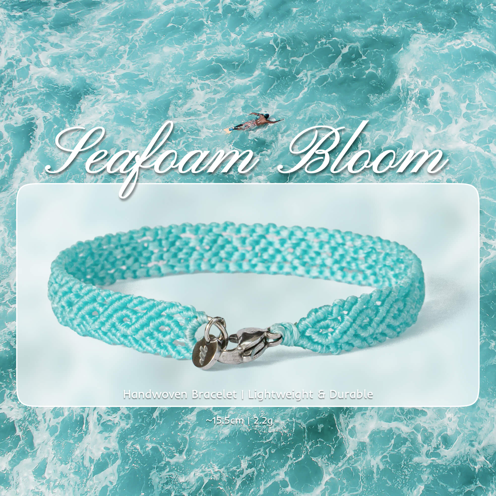 Seafoam Bloom is a handwoven expression of quiet strength, inspired by the rhythmic dance of ocean waves. Crafted with soft aqua threads in a blooming wave pattern, this bracelet features a sleek silver lobster clasp and a minimalist charm—delivering both style and symbolism. Lightweight, coastal, and effortlessly elegant, it’s your perfect everyday piece with a story.